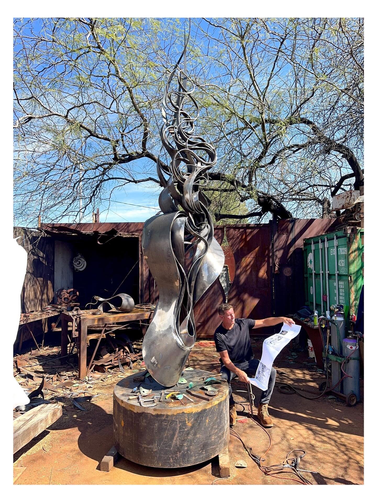View fullsize The queen of hearts - a fire formed Powder coated steel Sculpture positioned directly under the mighty red rock dome on the western edge of Camelback Mountain.